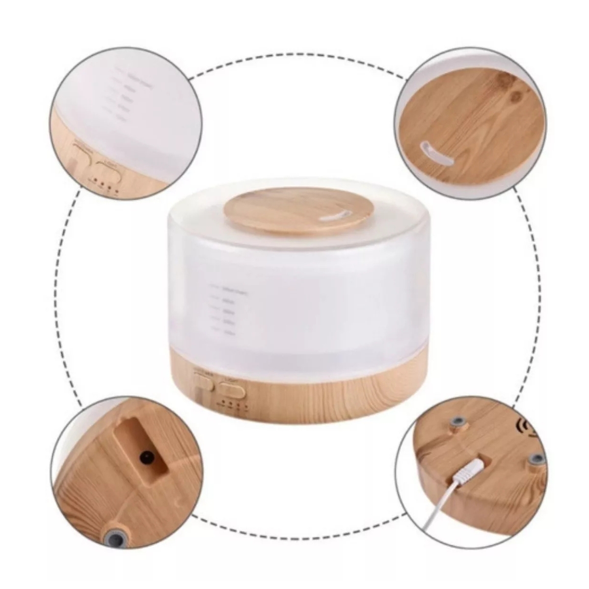Relájate, respira y dale estilo a tu espacio con este humidificador difusor ultrasónico de 500ml con acabado en madera. Ideal para usar con aceites esenciales, purifica el aire, hidrata ambientes secos y crea atmósferas relajantes con su luz LED de 7 colores.